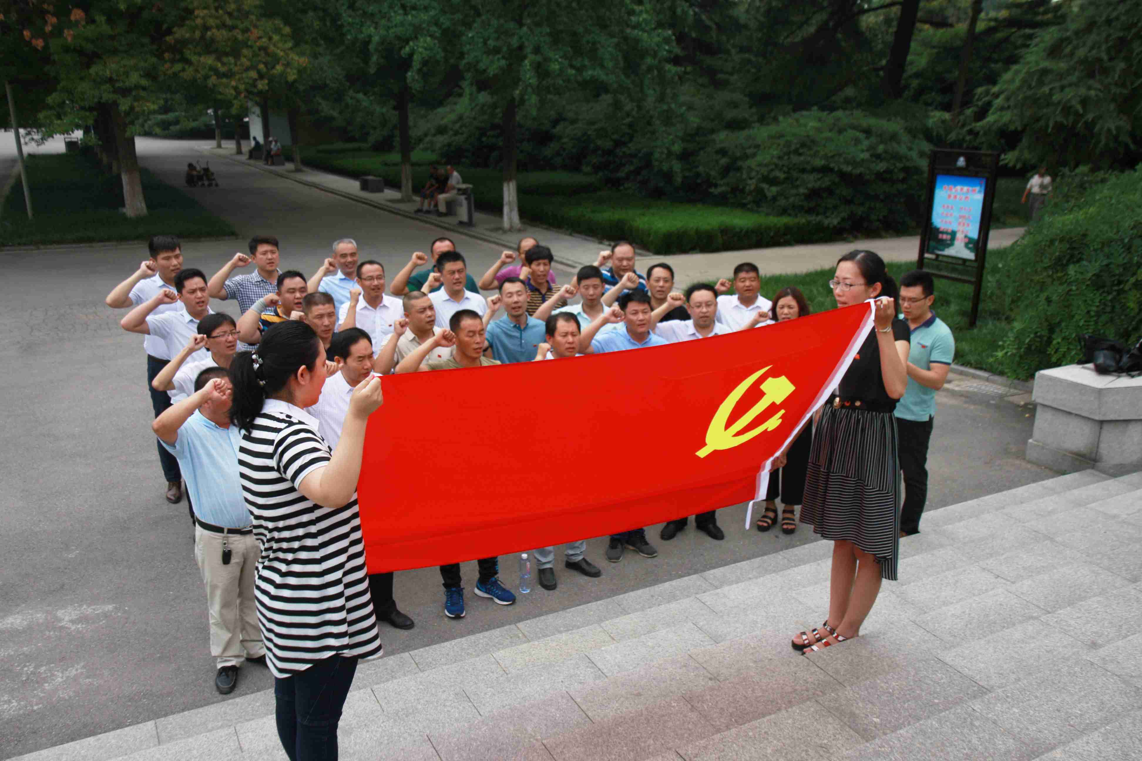在淮海戰(zhàn)役紀念雕塑像前,黨旗高擎,全體黨員在黨旗下舉行了莊嚴的黨員宣誓活動,重溫了入黨誓詞。錚錚誓言回響在淮海大地的上空,震撼在每一名黨員的心頭。通過重溫入黨誓詞,廣大黨員干部的內(nèi)心再一次受到洗禮,進一步喚醒了每一名黨員“初心”,讓廣大黨員干部進一步樹立了黨員干部“沖鋒在前、吃苦在前、奉獻在前”的擔當意識和黨員品質(zhì),時刻提醒自己牢記黨員身份,牢記自己的責任和使命,在工作崗位上堅持發(fā)揚先鋒模范帶頭作用,促使棗莊市政戰(zhàn)斗力、凝聚力不斷加強,進一步弘揚和發(fā)展棗莊市政“敢打硬仗、能打勝仗”的鐵軍精神。